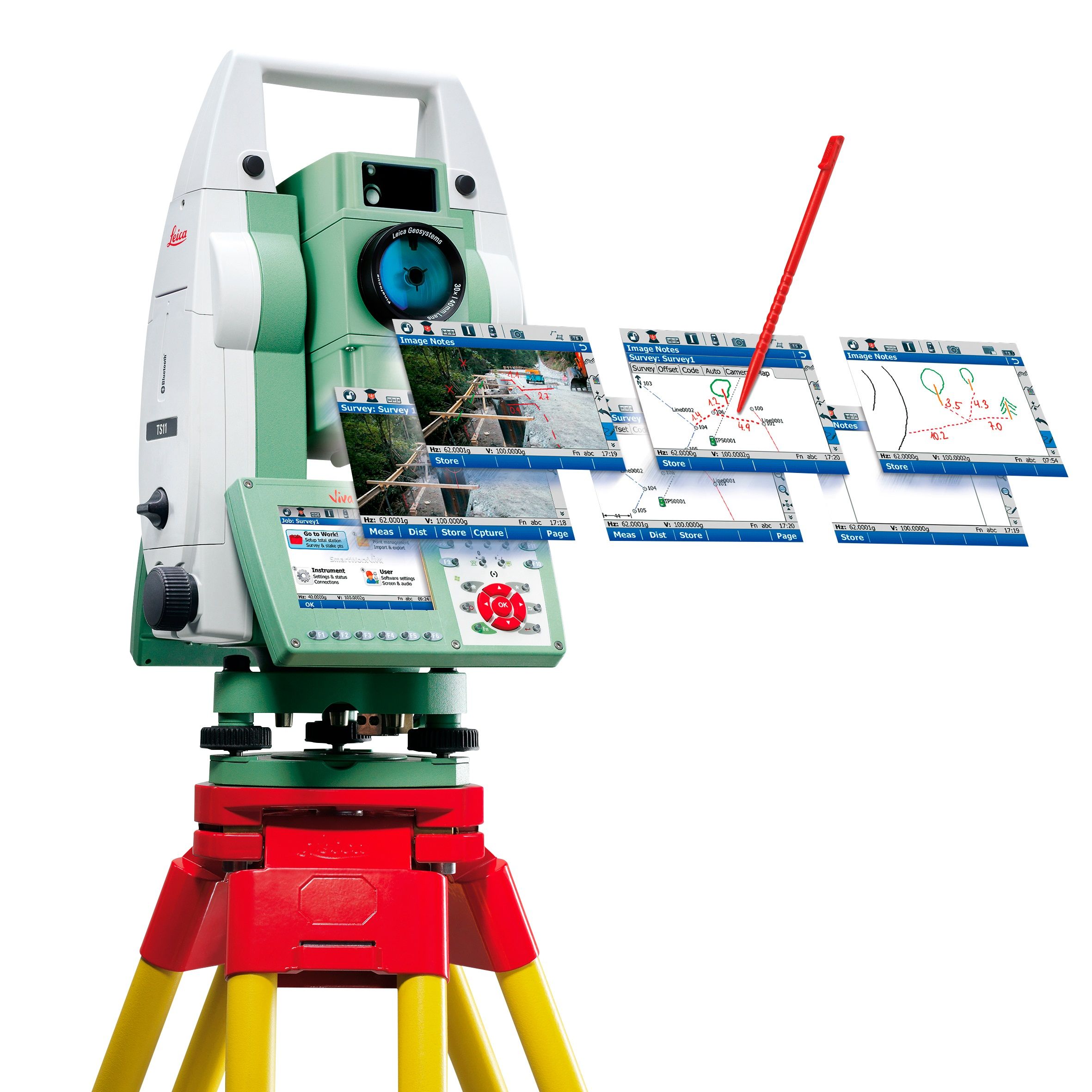 Leica Viva TS11 es la estación total manual más avanzada que incluye tecnología de imagen avanzada y el software integrado fácil de usar Leica SmartWorx Viva. Leica Viva TS11 impulsa la productividad a un nuevo nivel gracias a la tecnología de imagen y al Leica SmartWorx Viva. La exclusiva funcionalidad "captura-esquema de campo-vincular objetos” permite a la estación captar imágenes de alta resolución, trazar bocetos y luego vincularlas a cualquier punto de interés. Se evita tener que realizar nuevas visitas costosas y se mejora considerablemente la productividad. Cada proyecto, a cualquier escala, se hará realidad con facilidad.